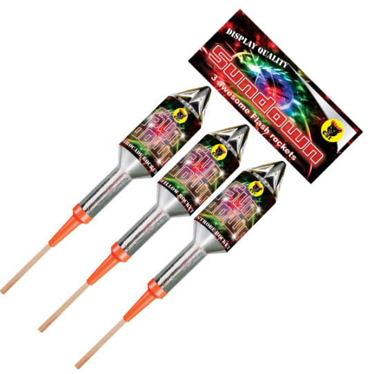 Rocket: An aerial firework which shoots into the sky leaving a trail of stars and finishing with